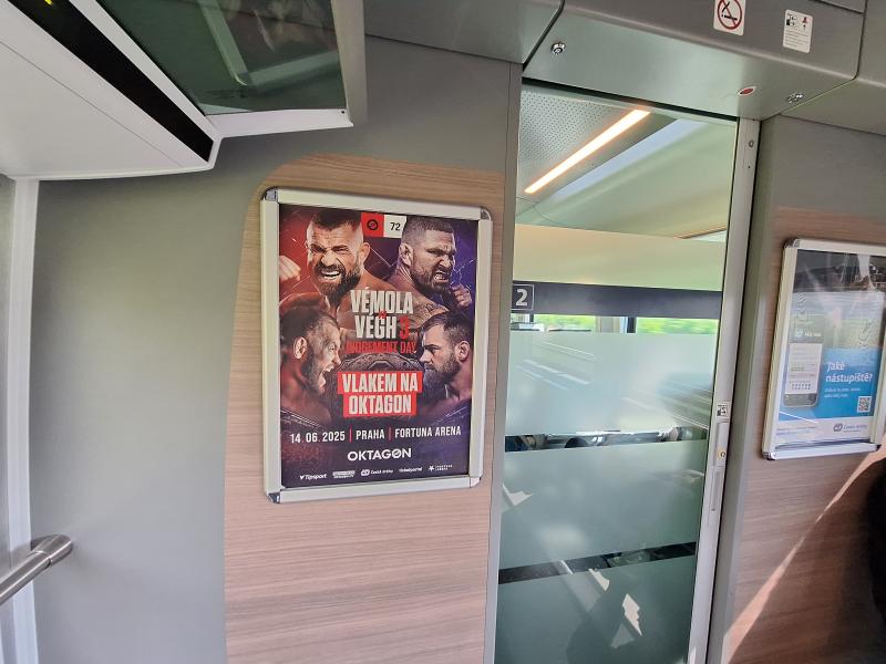 Plakáty formátu A2 na výšku v našich vybraných vlacích oslovují cestující přímo během jejich cesty v prostředí, kde mají čas vnímat sdělení.